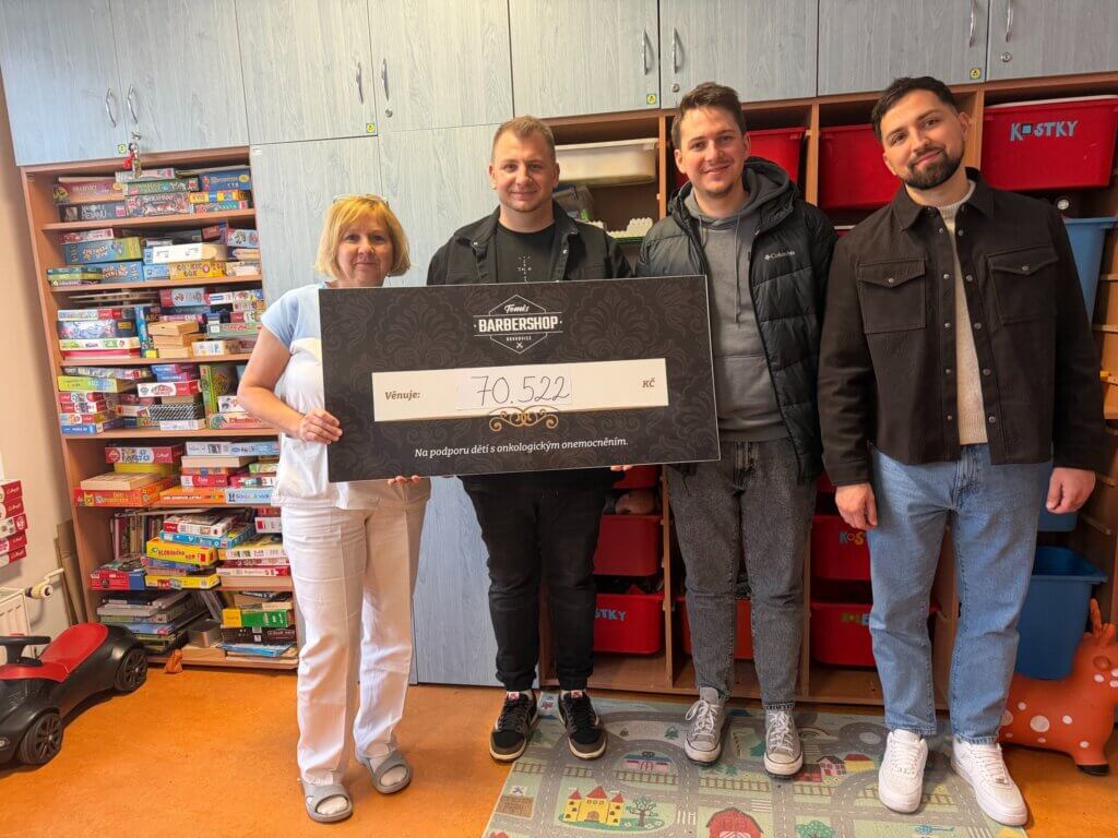 Ze srdce děkujeme Tomášovi, Michalovi a Davidovi z Tomi’s Barbershopu za neuvěřitelný výtěžek 70.522 Kč z akce Vánoční svařák pro dobrou věc. Už čtvrtým rokem kluci a jejich příznivci z tradičního pánského holičství v srdci Boskovic podporují naše pacienty léčené na Klinice dětské onkologie FN Brno.